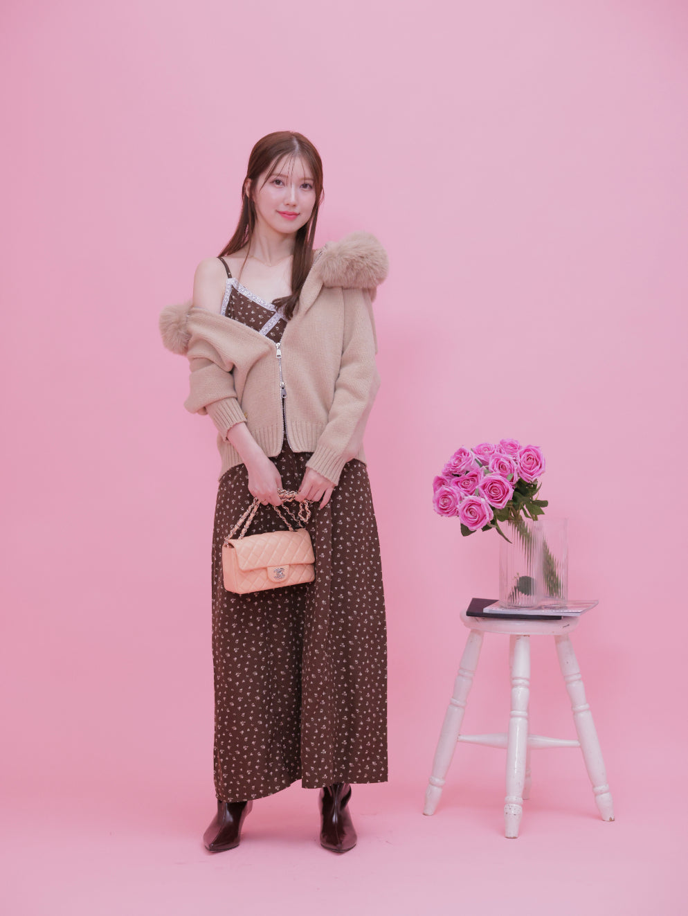 ふわふわのフェイクファーがあしらわれた、冬にぴったりのフーディニット。コンパクトな丈感で、ワンピースやハイウエストボトムとの相性も抜群♡