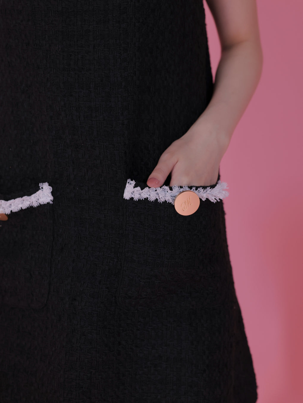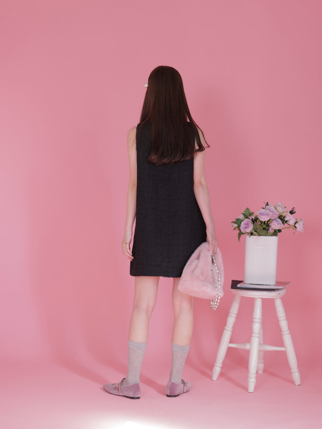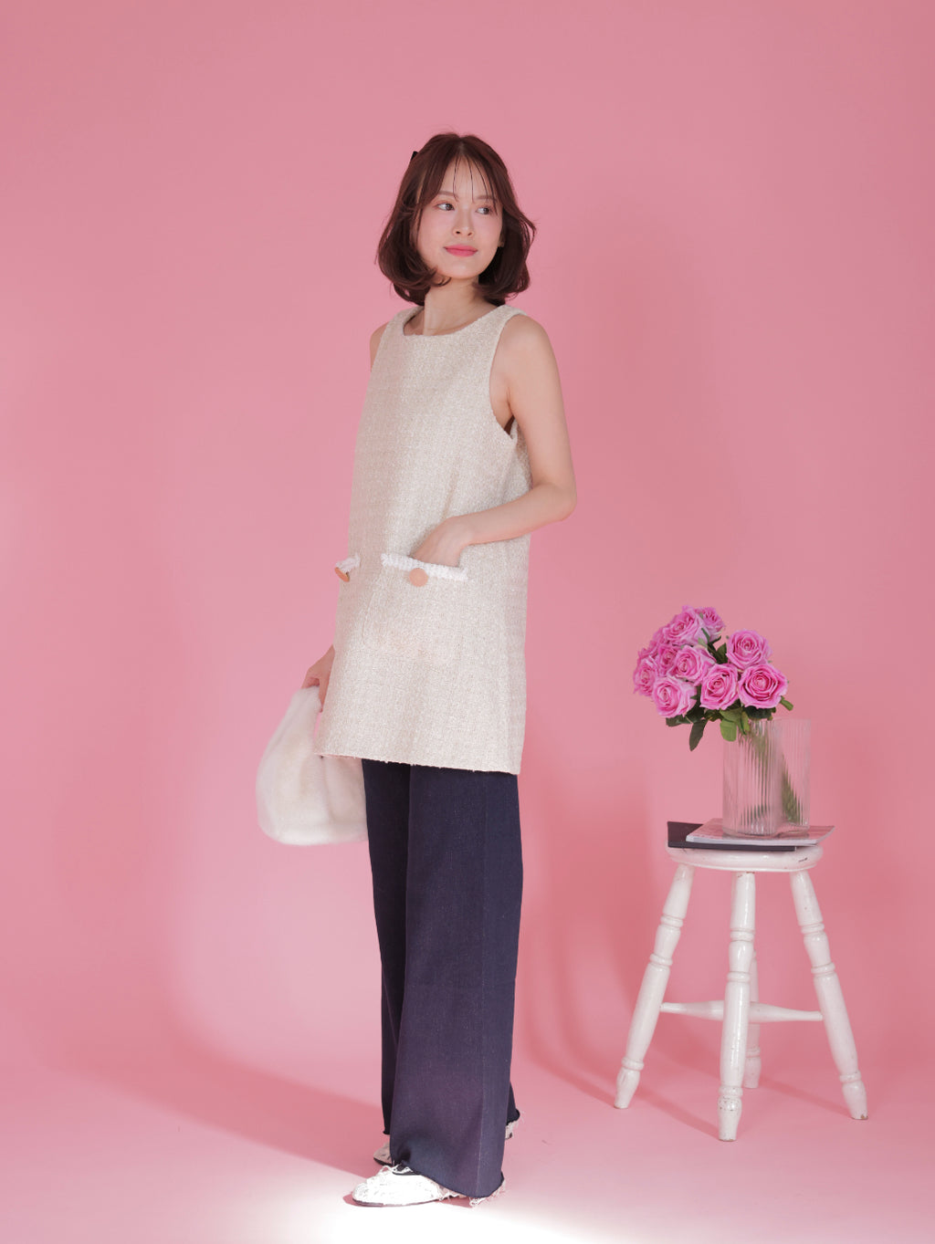上品なツイード素材に、ポケットのリボンディテールが映えるミニドレス。程よいAラインシルエットでスタイルをきれいに見せてくれます♡