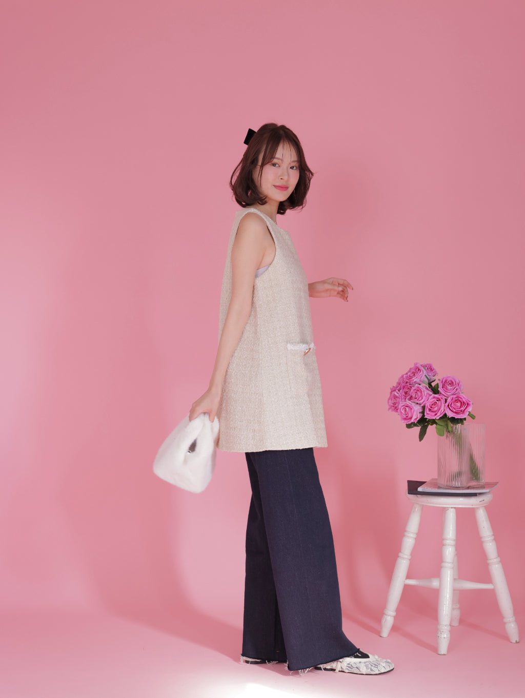 カラーによって印象が変わり、アイボリーはフェミニンに、ブラックは大人ガーリーに。