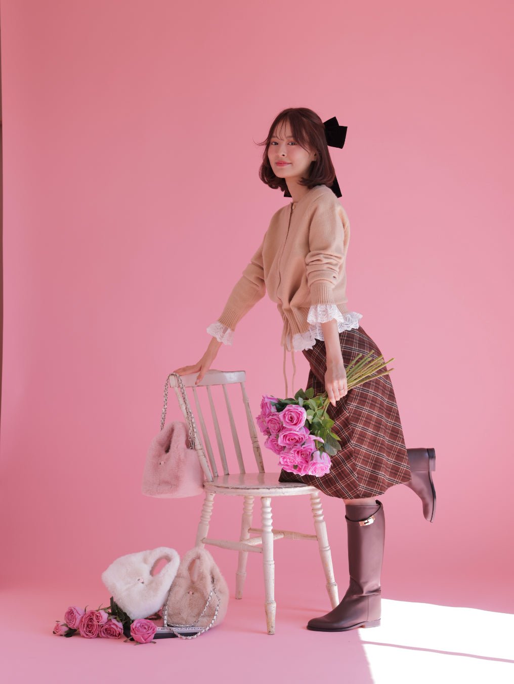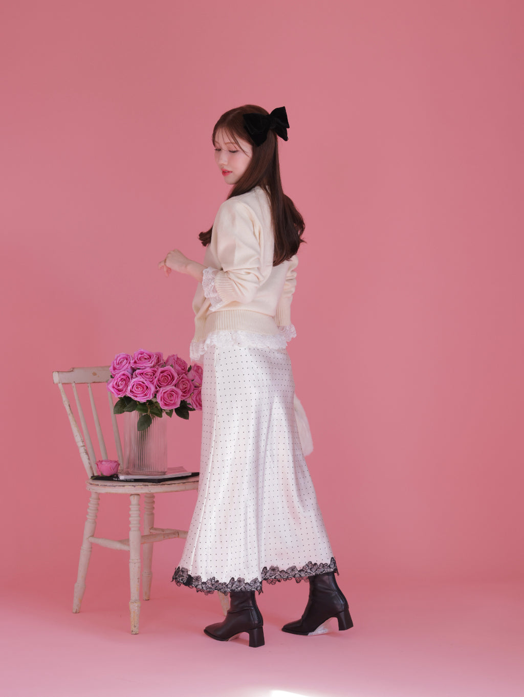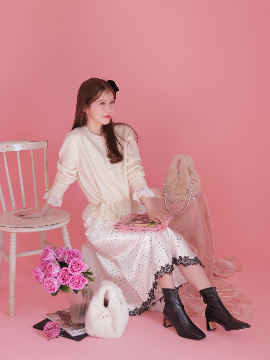 袖口と裾のレースがさりげなく華やかで、どこかクラシカルな印象に。